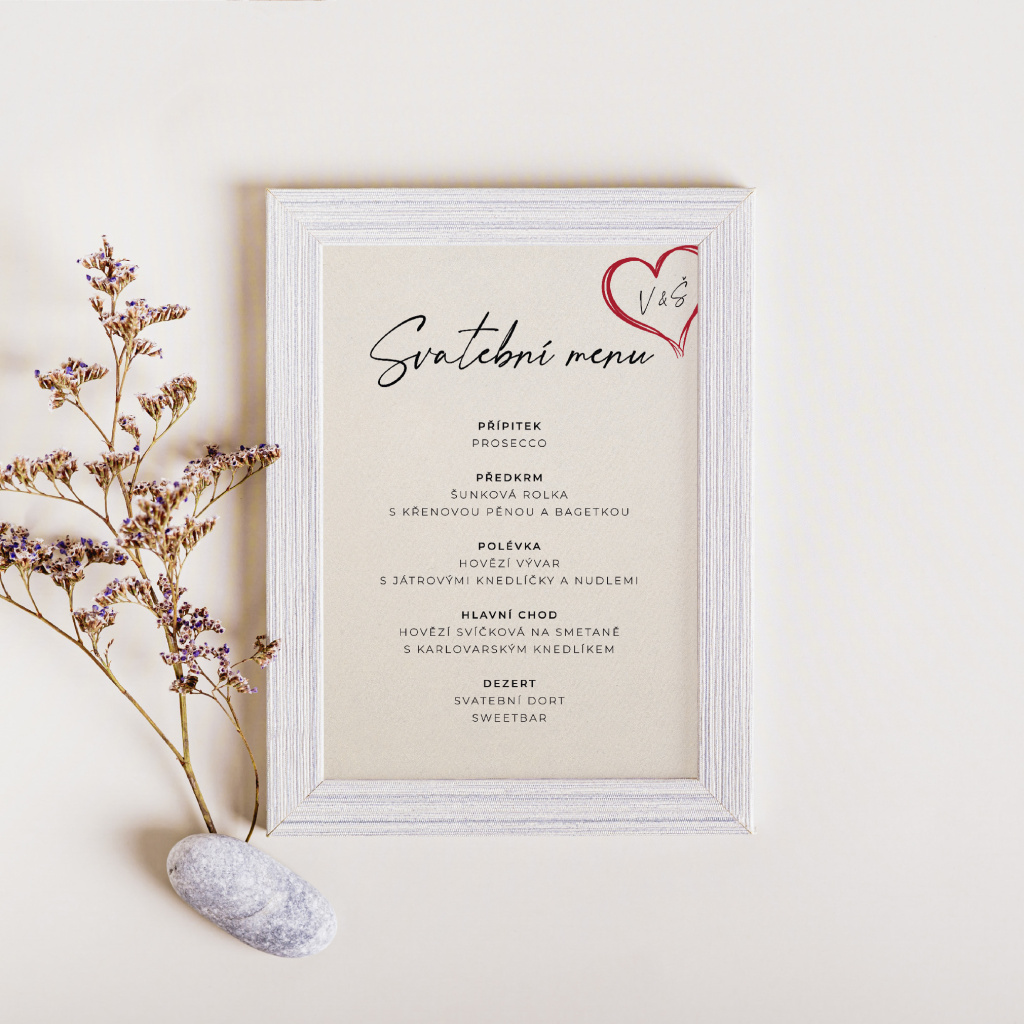 Svatební MENU - A3 001 Doplněk na Vaší slavnostní tabuli